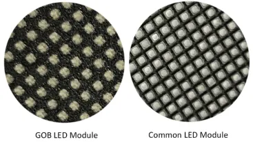 GOB LEDs is the abbreviation of glue on board. It has transparent material on the led module surface. It protects LED lamps and makes module waterproof.
