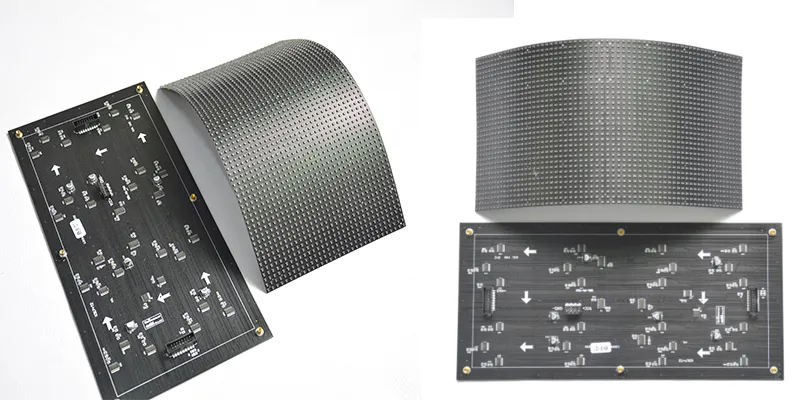 The soft module LED display has the characteristics of thinness, lightweight, small size, high pixel density, displayable curved surface, low installation cost, etc., which can realize the display needs of various screen shapes and provide a variety of screen sizes (P1.56 -P5)